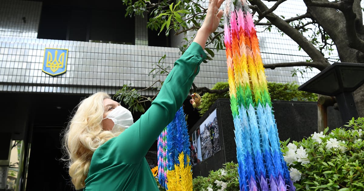 ※8 ウクライナ大使館に千羽鶴:日本経済新聞